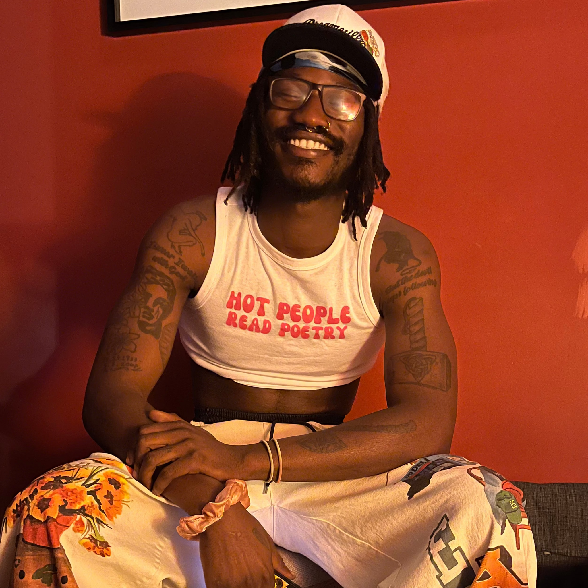 Our original hot pink on white Hot People Read Poetry cropped tank top